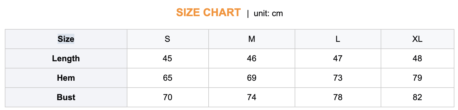 Size Chart: